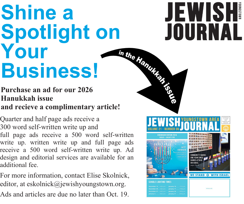 Phone: 330.746.3250 | Fax: 330.746.7926 | Email: journal@jewishyoungstown.org